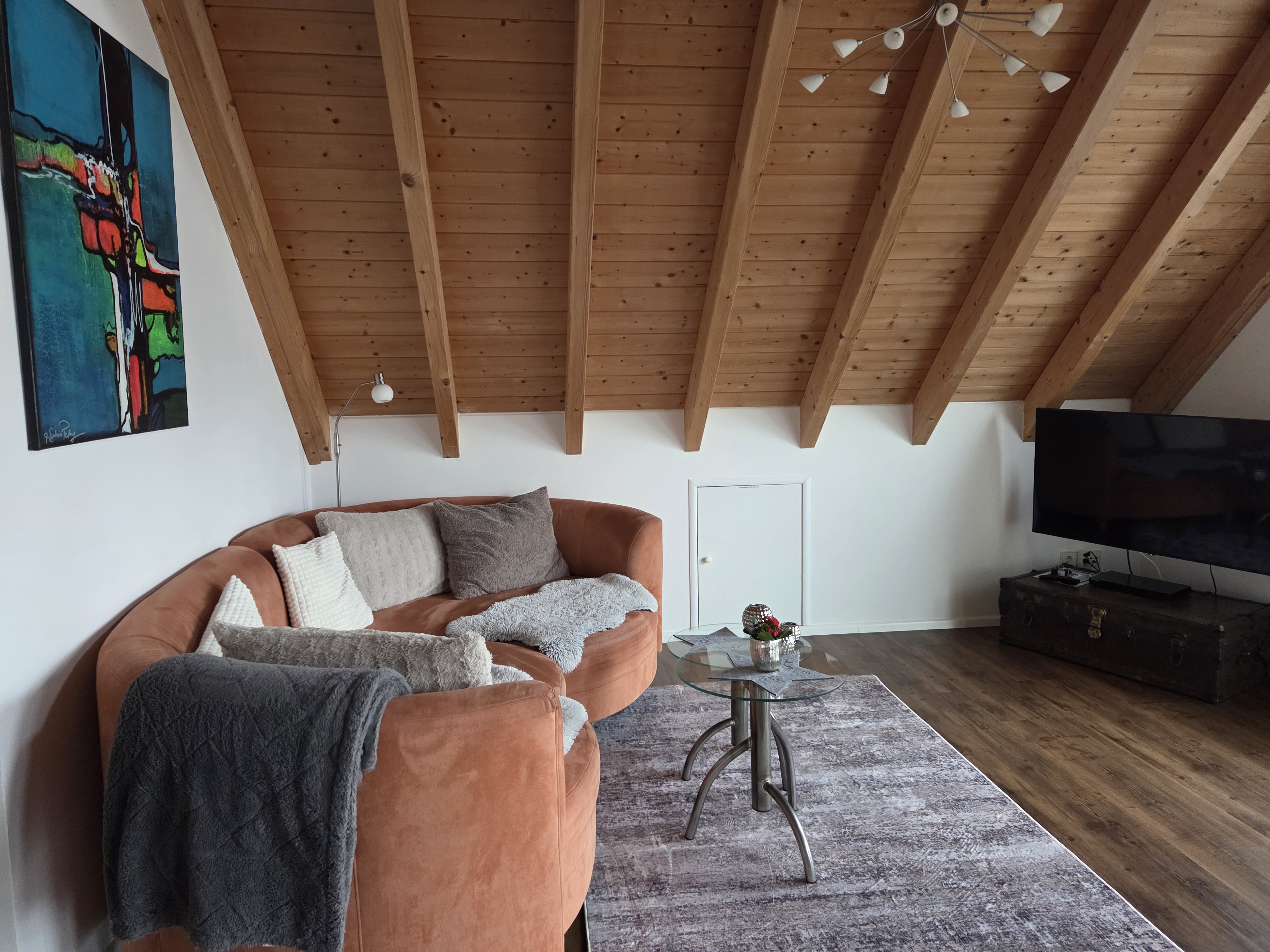 Das Apartment wurde 2016 fertiggestellt und befindet sich im Dachgeschoss unseres Einfamilienhauses. Im Sommer angenehm kühl (über eine Fußbodenheizung) und im Winter wohlig warm, hier lässt es sich das ganze Jahr über gut wohnen.